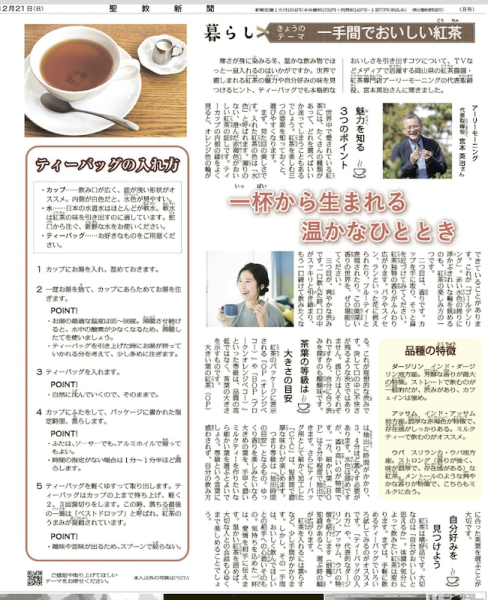 聖教新聞文化欄【暮らし】に紅茶の魅力と入れ方を掲載いただきました